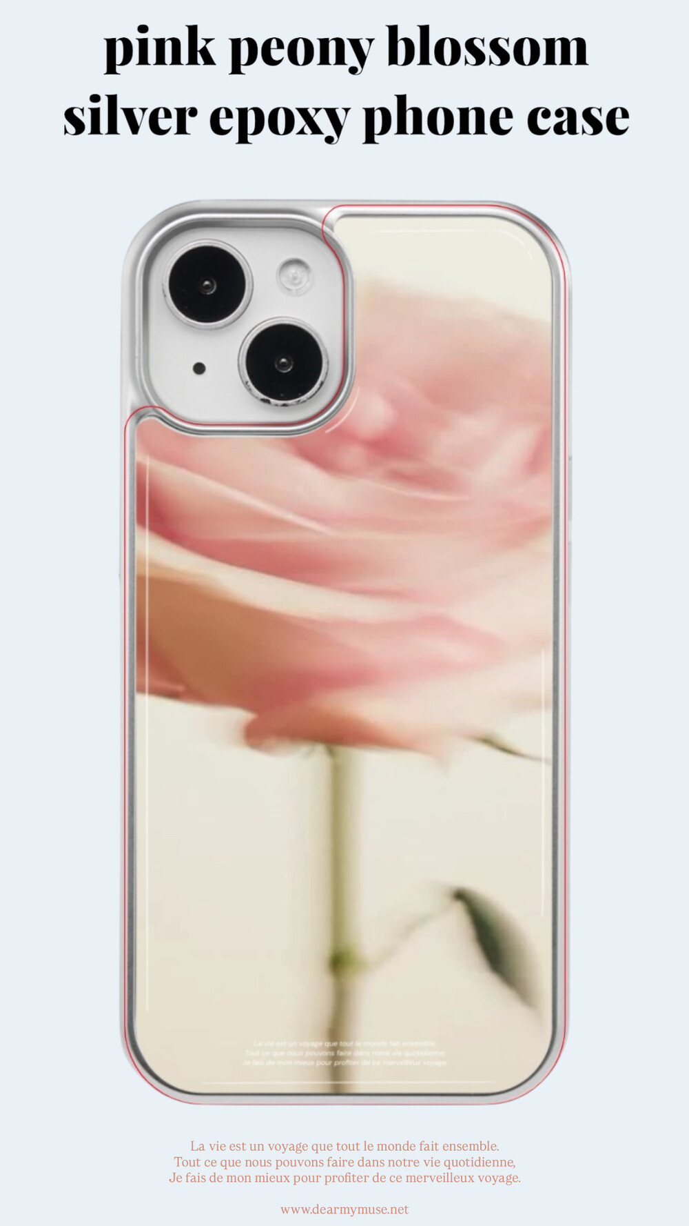 (silver epoxy) pink peony blossom